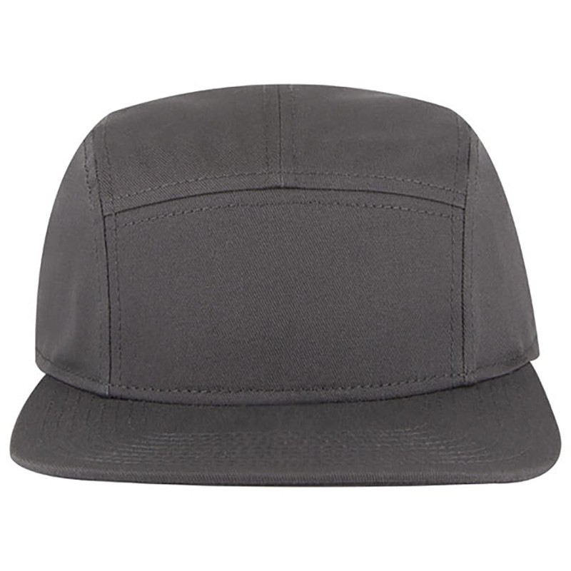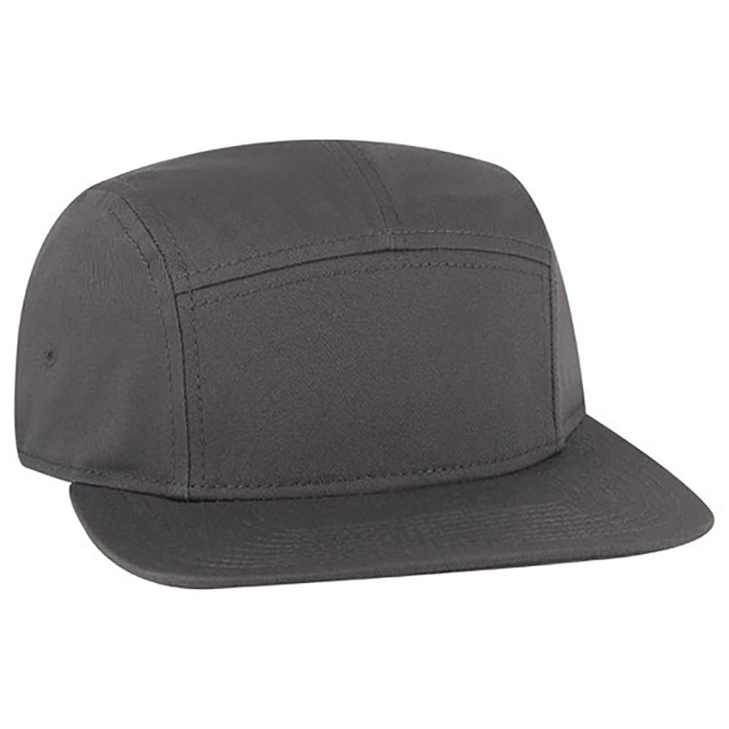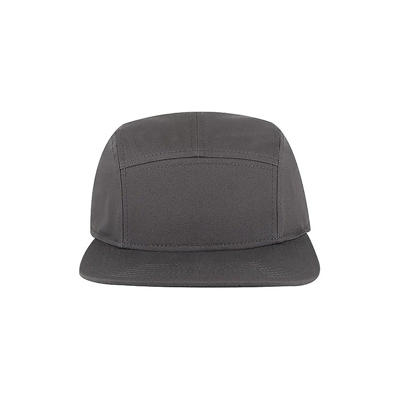 Ashen Fane 5 Panel Superior Cotton Twill Square Flat Visor Snapback Camper Hat, Charcoal Grey