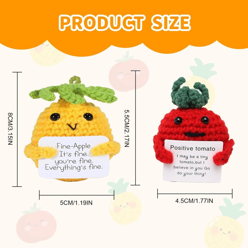 Asheyya 2 PCS Positive Tomato & Pineapple Affirmation Gifts for Men Women, Mini Knitted Good Luck Charm Motivational Gifts with Positive Card