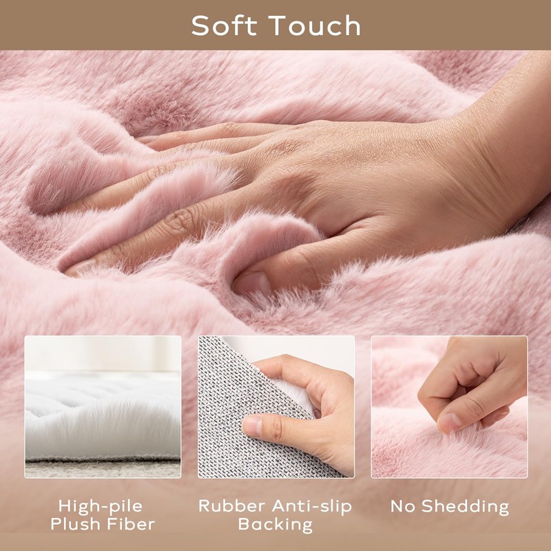 - Faux rabbit fur rug : Top-quality faux rabbit fur, providing super soft and silky touch. Transform your bedroom or living room into a cozy haven with our fluffy and shaggy faux fur rug. Airy 3D bubble shape, light and agile as snowballs. Simple but no monotonous, easy to create a warm and cozy atmosphere.