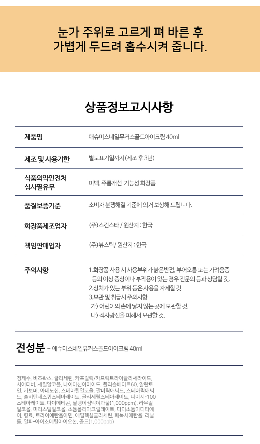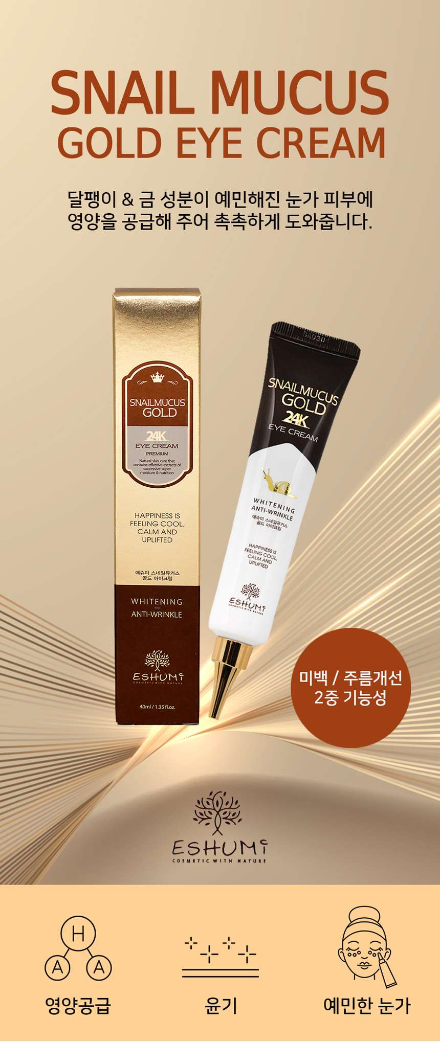 - Feature: Ashmy Snail Mucus Gold Eye Cream