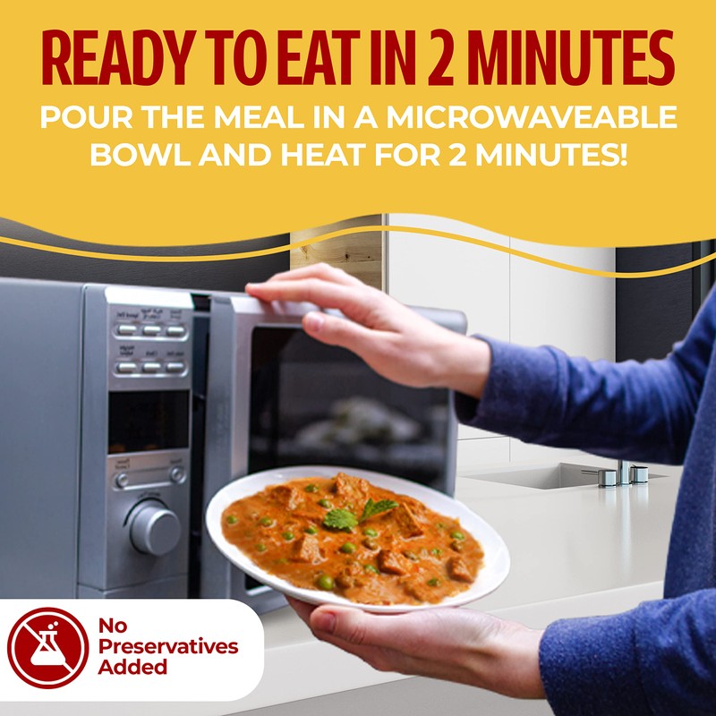 With Ashoka Palak Paneer you can have your meal ready in just 2 minutes. Whether you are on the go or on a picnic, this healthy food is ready to be with you. And preparing it is as easy as it sounds. Just empty the content in the bowl and microwave it for 2 minutes or immerse the unopened food foil in boiling water for 3-5 minutes and your favorite meal is ready.