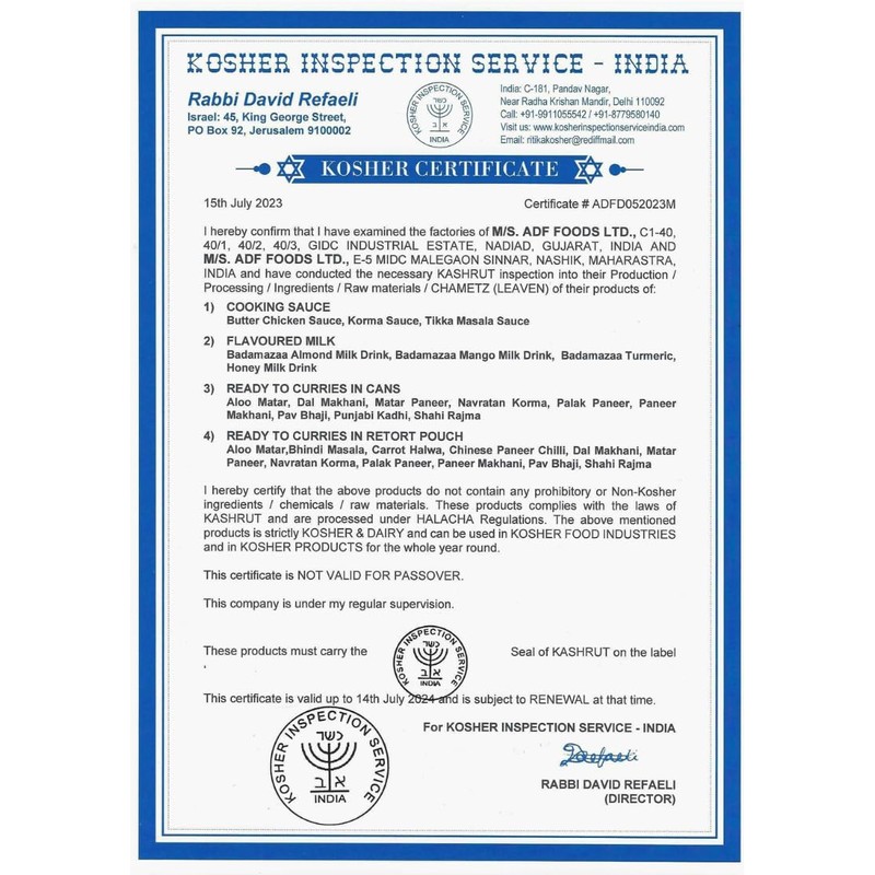 Ashoka Ready to Heat Meals 1932, Vegetarian Spinach Cheese Curry, Kosher Cert...