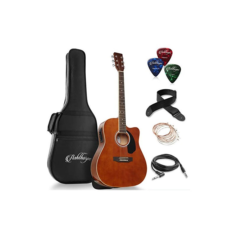 - Complete kit: Bundle includes the Ashthorpe guitar, a soft nylon "gig bag" guitar case, thin, medium & heavy celluloid picks, on-board 4-band pickup EQ, guitar cable, a shoulder strap, an extra set of strings and an owner's manual.