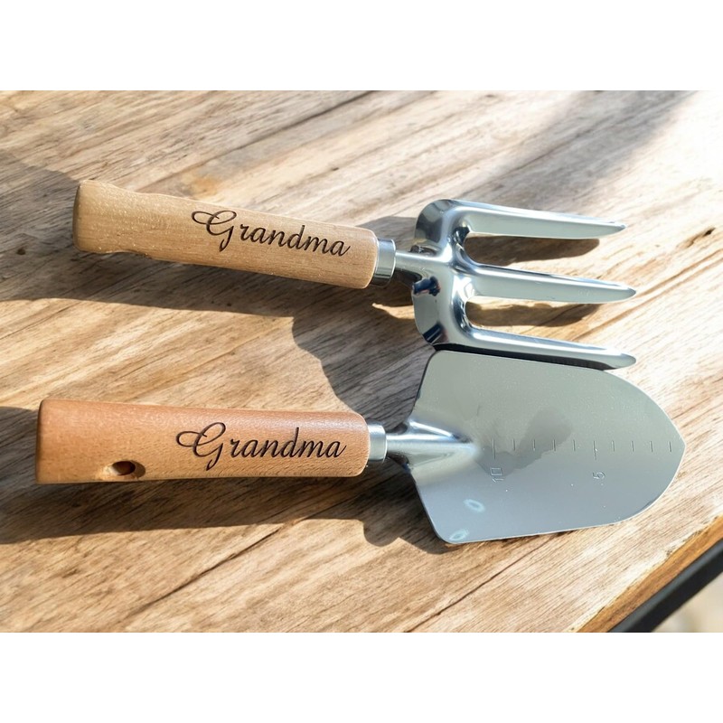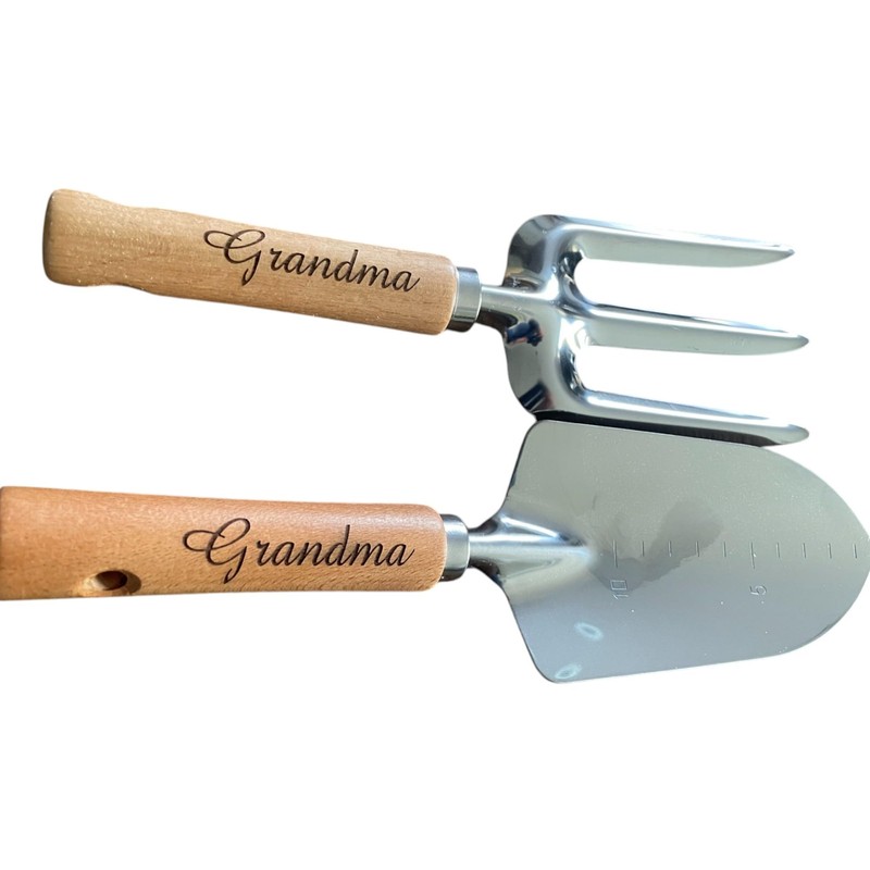 Ashton and Finch Heavy Duty Weed Fork and Trowel Set - Laser Engraved With Grandma - Carbon Steel Head, Ash Wood Handle - Lightweight, Durable, Corrosion Resistant Gardening Fork - Garden Tool Gift