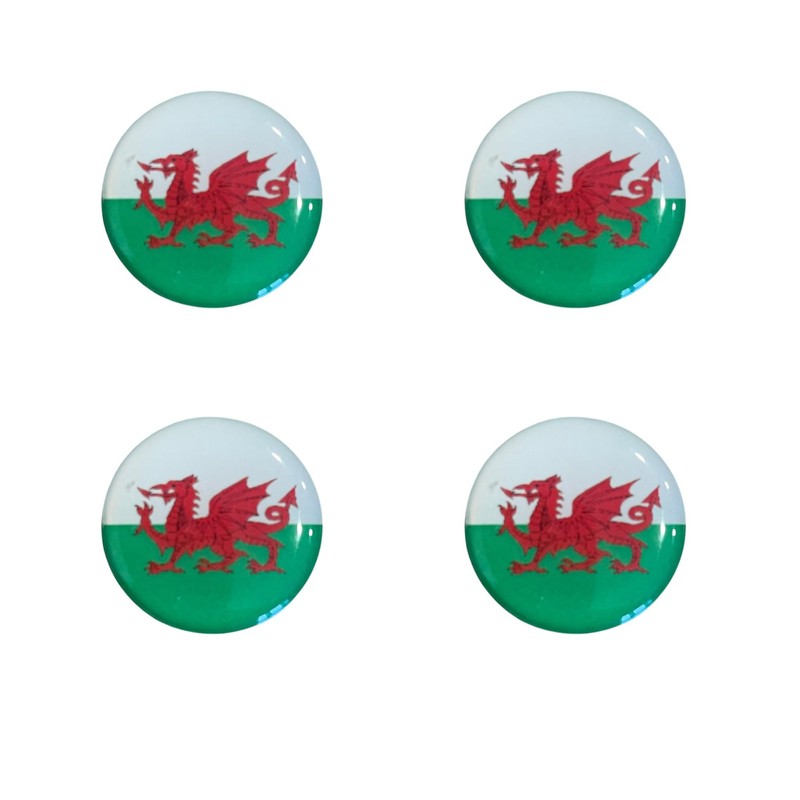 Ashton and Finch Welsh Flag Golf Ball Markers – Pack of 4 with Metal Backs – Resin Domed, Waterproof, Rustproof – Golf Accessories and Gifts for Men Featuring the Red Dragon