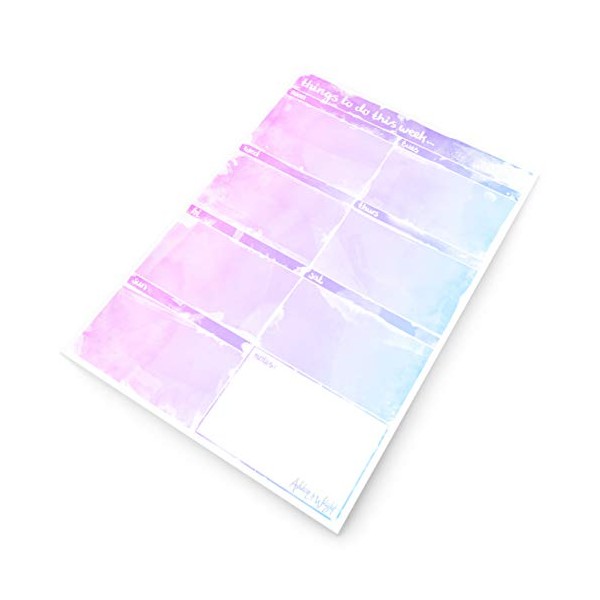 Ashton and Wright - Weekly To Do Planner - A4 Watercolour Desk Pad - 60 Sheets - Made in UK