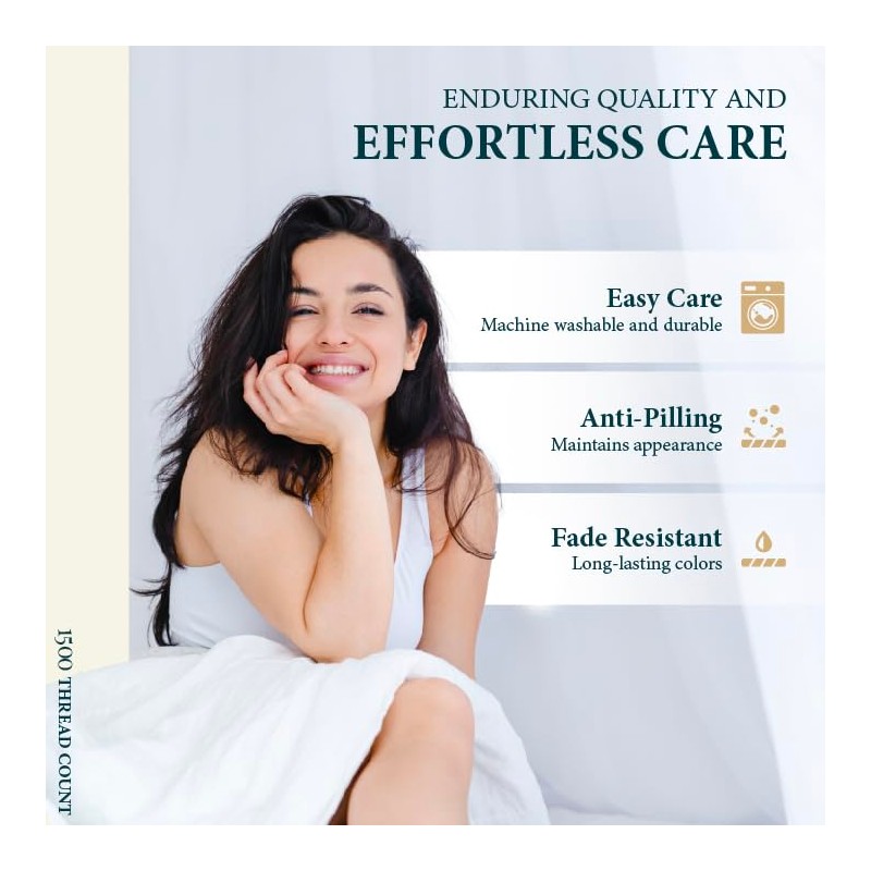• Made To Last—Pill & Color Fade Resistant: All our king egyptian cotton sheet set are mercerized to improve the luster of the fabric, retain original, bright color on wash, and resist pilling and fading. To ensure our 1500 thread count Egyptian cotton king sheets last a long time, machine wash warm and tumble dry on low mode. Please note our Egyptian cotton sheets wrinkle on the wash. Iron lightly after taking them out of the dryer for a smooth appearance