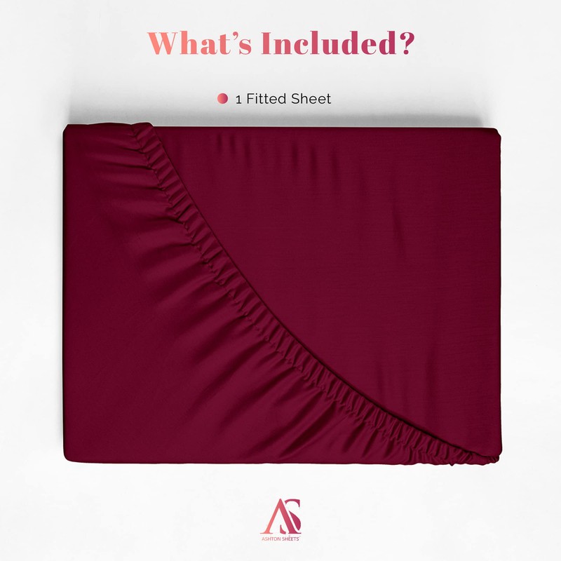 Ashton Sheets Luxury Egyptian Cotton King Fitted Sheet Only - 1000 Thread Count Deep Pocket King Fitted Sheet, Extra Long Staple Sateen King Size Fitted Sheet - Fits Upto 18" Deep Mattress - Burgundy