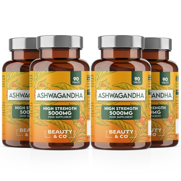 Ashwagandha 5000mg Tablets, High Strength Ashwagandha- Pure Ashwagandha, Vegan, Made in UK 4 x 90 (360).