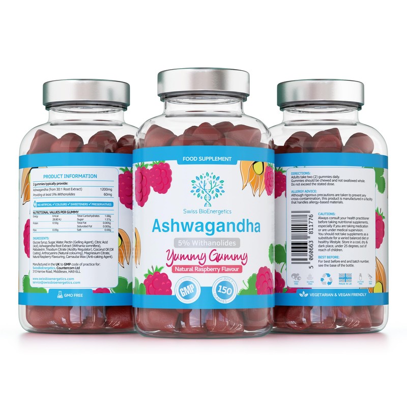 - ✔ HIGHEST POTENCY – Swiss BioEnergetics Ashwagandha Yummy Gummies provide Ashwagandha Root Extract which is the equivalent to 1200mg of pure Ashwagandha Root. Our gummies contain 5% Withanolides – they key active ingredient. Easy to take and in a super tasty all-natural raspberry flavour. No Artificial Colours, Flavours, Sweeteners or Preservatives