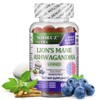 NOORUZ Ashwagandha & Lion's Mane Mushroom& Blueberry Gummies Vegan | Plant-Based Extracts | Non-GMO | Gluten-Free | Gelatin-Free Supports Cognitive and Memory Health