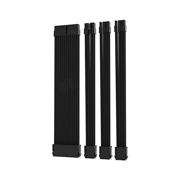 Asiahorse 18AWG Power Supply Sleeved Cable /24pin ATX /4+4pin EPS /2 x 6+2pin PCI-E PSU Extension Cable Kit 30cm Length with Two Color Combs, Black(11.8inch/30cm)