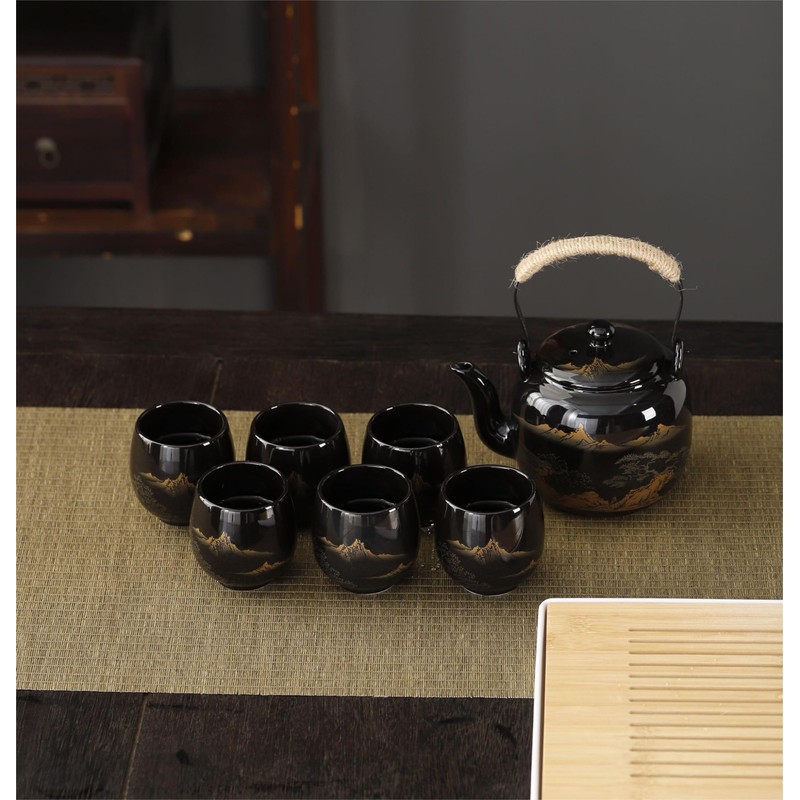 - 【Comprehensive Set for Entertaining and Daily Use】This Black with Gold Landscape tea set is as functional as it is beautiful, including everything needed for a full tea service. The set features a teapot with a built-in, stainless steel filter for easy brewing and cleanliness, along with six matching teacups. Perfect for entertaining guests or enjoying a peaceful moment alone, this tea set is a versatile addition to any collection, promising to make every tea time a luxurious affair.