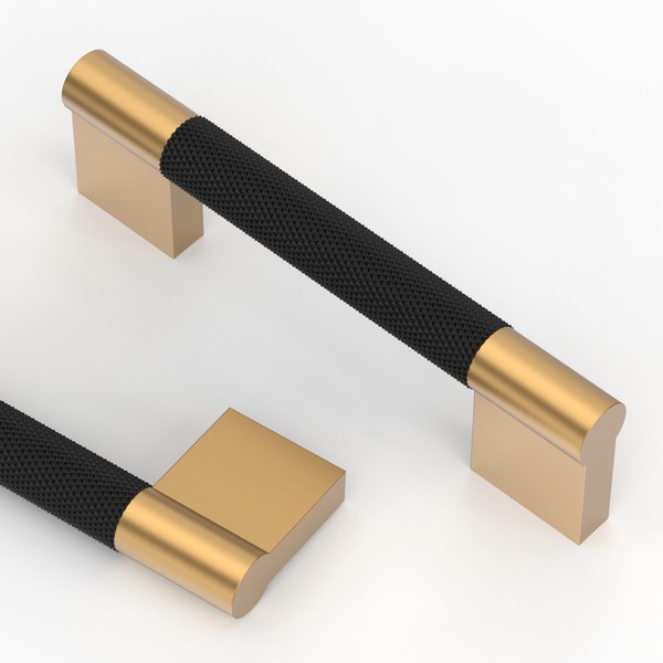 Asidrama 10 Pack 3.75 Inch(96mm) Matte Black and Champagne Bronze Knurled Kitchen Cabinet Handles, Cabinet Pulls Kitchen Cabinet Hardware for Cupboard Drawer Pulls