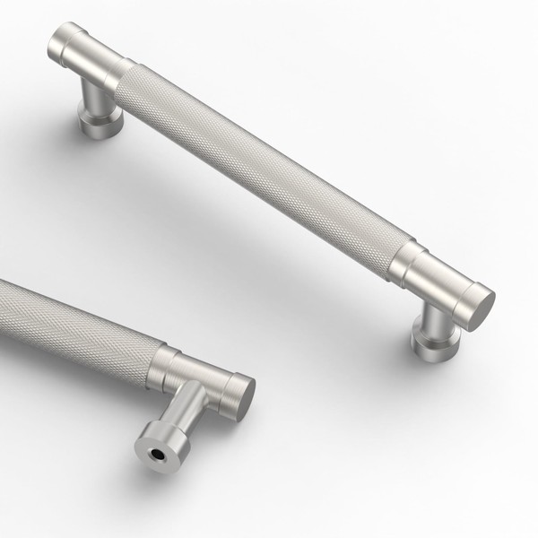 Asidrama 10 Pack 5 Inch(128mm) Brushed Satin Nickel Cabinet Pulls Knurled Kitchen Cabinet Handles, Cabinet Pulls Kitchen Cabinet Hardware for Cupboard Drawer Pulls