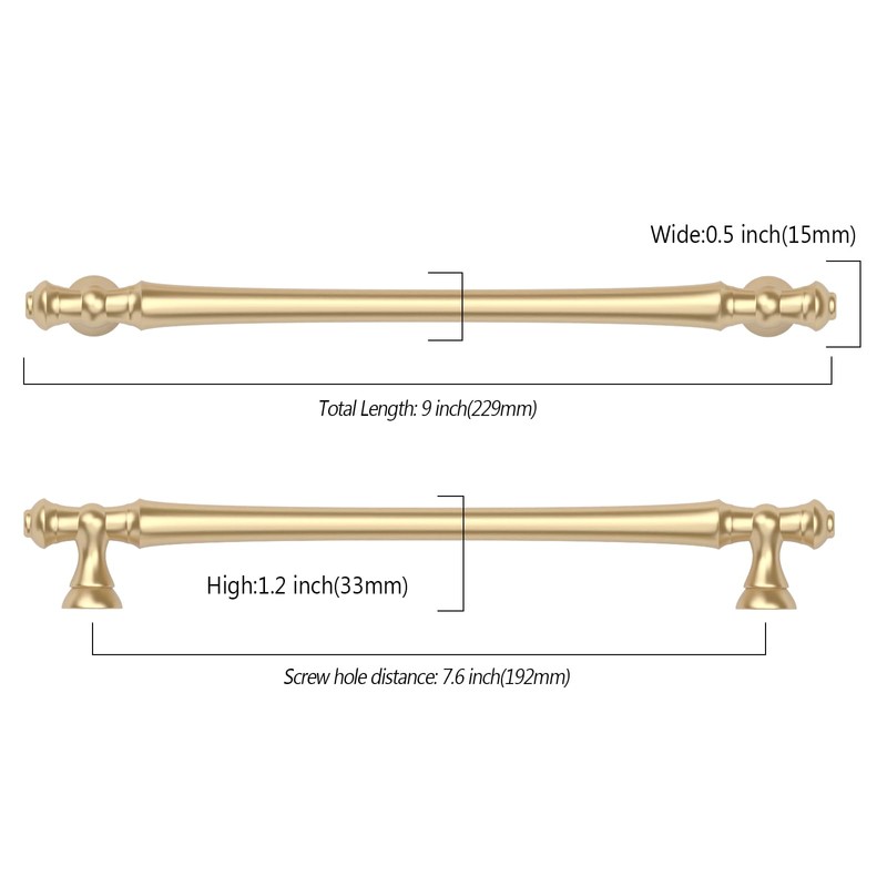 - Measurement: Hole Centers(CC):7.5 inch(192MM); Overall Length:9.1 inch(233MM);Width:0.5inch(15MM);Projection:1.2inch(33MM); Please check the Size of handles you require carefully before purchasing.