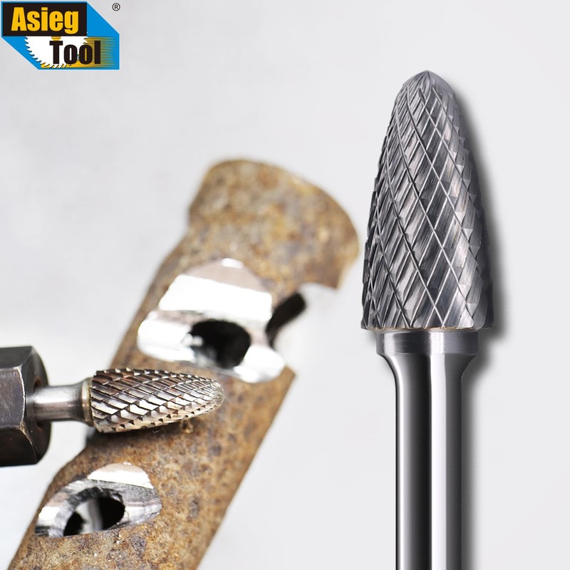 Asieg Tool SF-5 Tungsten Carbide Tree Shape Radius End Shape Double Cut Rotary File Burr - 1/4'' Shank, 1/2'' Cutter, 1'' Length - 10Pcs