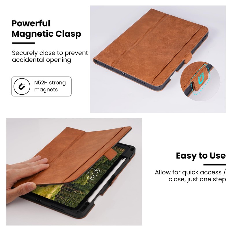 • Magnetic Closure & Auto Sleep/Wake: Powerful magnetic clasps keep the case securely closed, preventing accidental openings and ensuring protection when not in use. The magnets enable a 0.1 second response for auto sleep/wake functionality, conserving battery life