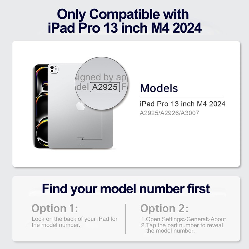 • Compatibility: Case Compatible with iPad Pro 13 Inch 2024 M4 7th Generation (model:A2925/A2926/A3007). Precise cutout ensures full access to all ports and buttons