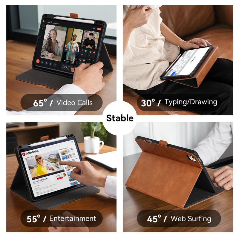 • Stable Multi-Viewing Angles & Typing Angle: Featuring 3 adjustable angles, this case allows hands-free viewing movies,web browsing and video chatting.It can be folded to an ergonomic typing/drawing Angle,reducing wrist strain. Anti-slip microfiber and deepened grooves ensure stability in every position