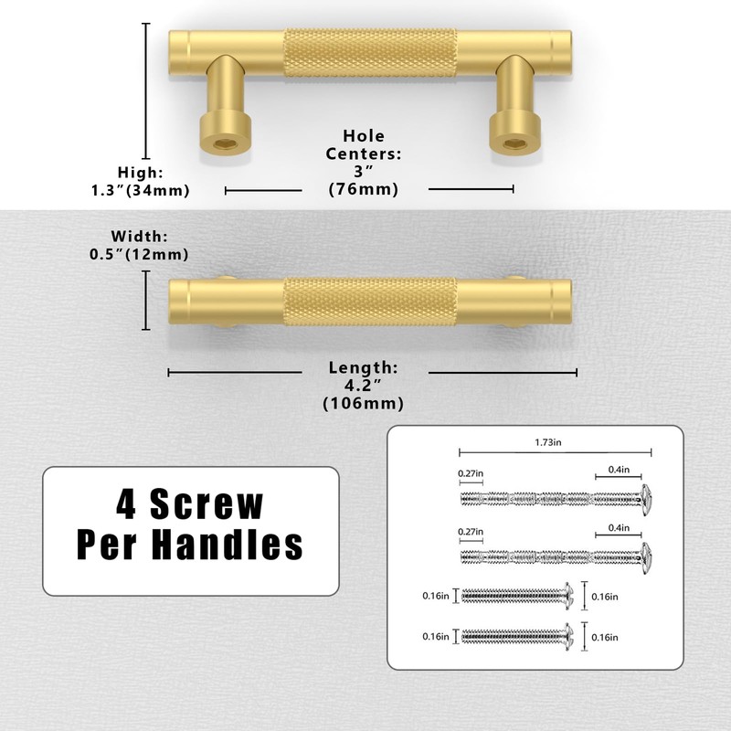 - Measurement: Hole Centers(CC):3 inch(76MM); Overall Length:4.2 inch(106MM); Width:0.5 inch(12MM); Projection:1.3 inch(34MM); Please check the Size of handles you require carefully before purchasing.