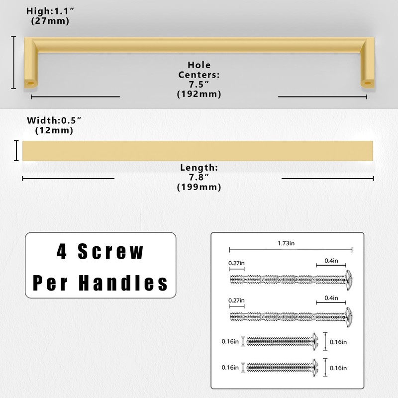 - Measurement: Hole Centers(CC):7.5"(192mm); Overall Length:7.87"(200mm); Width:0.47"(12mm), Projection: 1" (27mm); Please check the Size of handles you require carefully before purchasing.