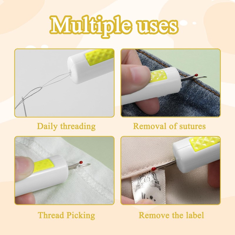 - DOUBLE HEAD DESIGN Our needle threader features a double head design that combines a needle and thread threader and a seam ripper in one. This design simplifies sewing as you can easily thread the needle and remove stitches. Whether sewing, craft or quilting projects, this threader is your reliable companion.