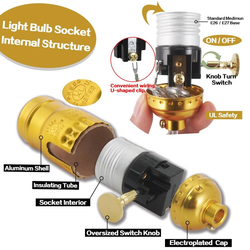 - Perfect for DIY Lamp: Features an antique gold electroplated metal finish and high-quality (18 AWG SPT 2x0.824mm²) clear cord construction for a classic, premium look. Ideal for indoor lamp making or repairs, combining durability with practical design.