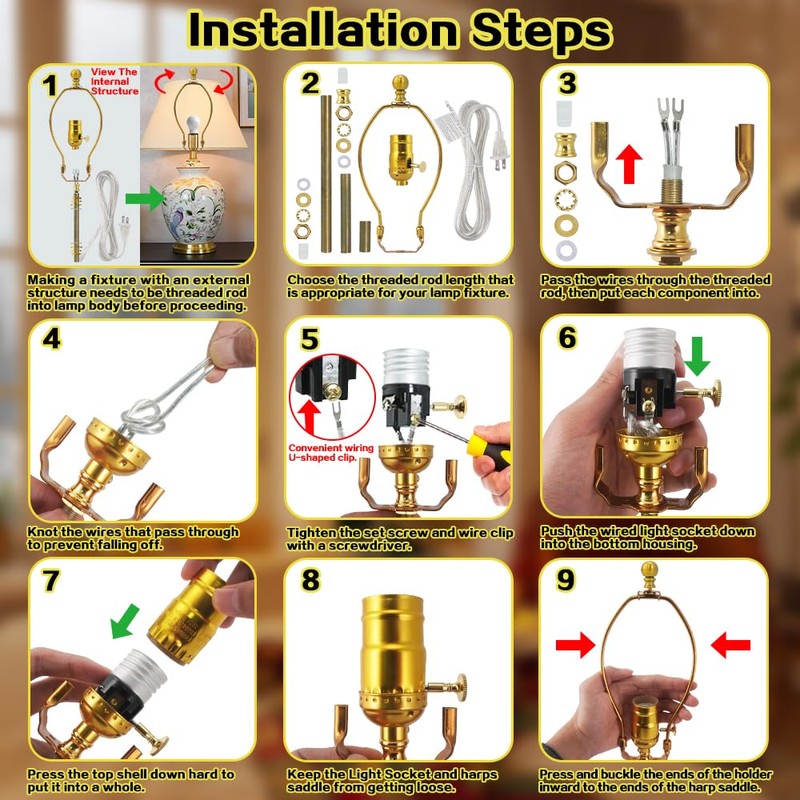 - No Prior Skills Needed: Making or repair lamps effortlessly with this all-in-one kit! Designed for beginners and DIY lovers, it includes all parts, detailed instructions, and clear wiring guides. Whether restoring a vintage lamp or crafting a custom design, assembly is quick and stress-free.