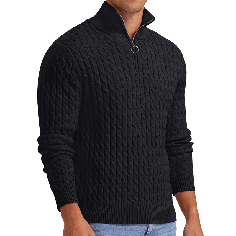 Askdeer Men's Quarter-Zip Sweater Mock Turtleneck Cable Knit Pullover Sweater Soft Casual Polo Sweater with Cable Pattern Black