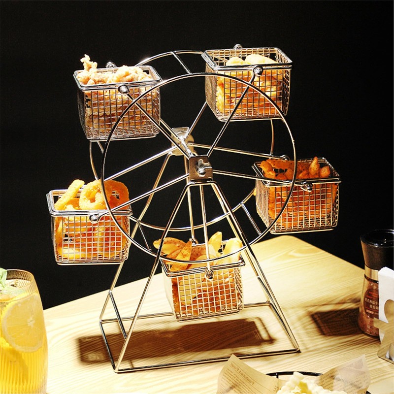 - 【Show Snack in an interesting way】Decorate your beautiful snacks with this Ferris Wheel Snack Showcase! The wheels can rotate freely and can accommodate up to 5 medium sized Snacks. Also with Fries, Vegetables, Fruit and Other Appetizers