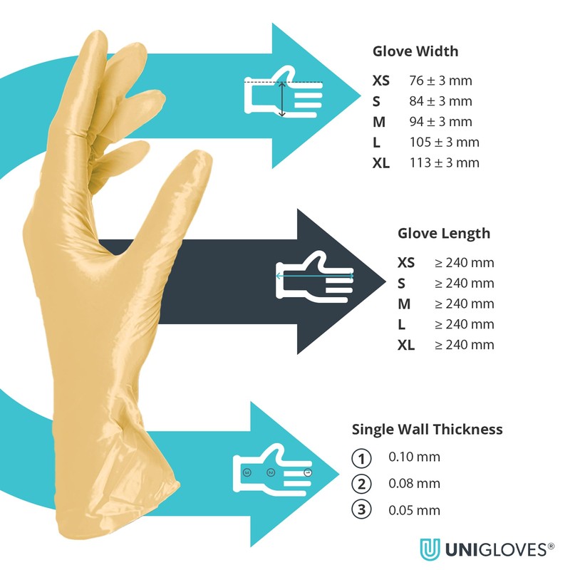 ASKON Unigloves Unigloves Fancy Gold Nitrile Gloves, Shiny Gold, Disposable Gloves, Non-Sterile, Latex-Free, Powder-Free, Food-Safe, Protection Against Viruses, Fungi and Bacteria (M (7-8))