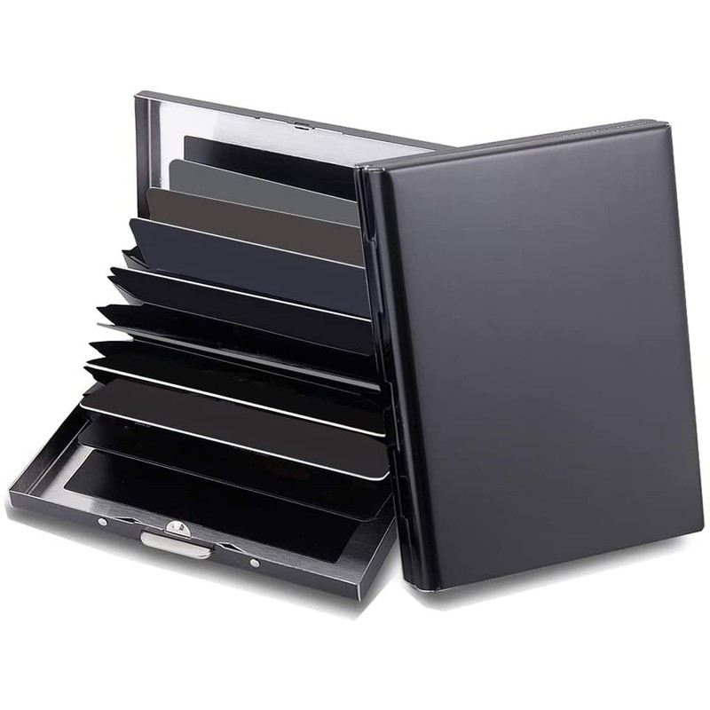 Pocket sized metal wallet, convenient and safe to put in any pocket and carry around. 10 card slots, you can put debit card, bank card, smart card or other RFID card.