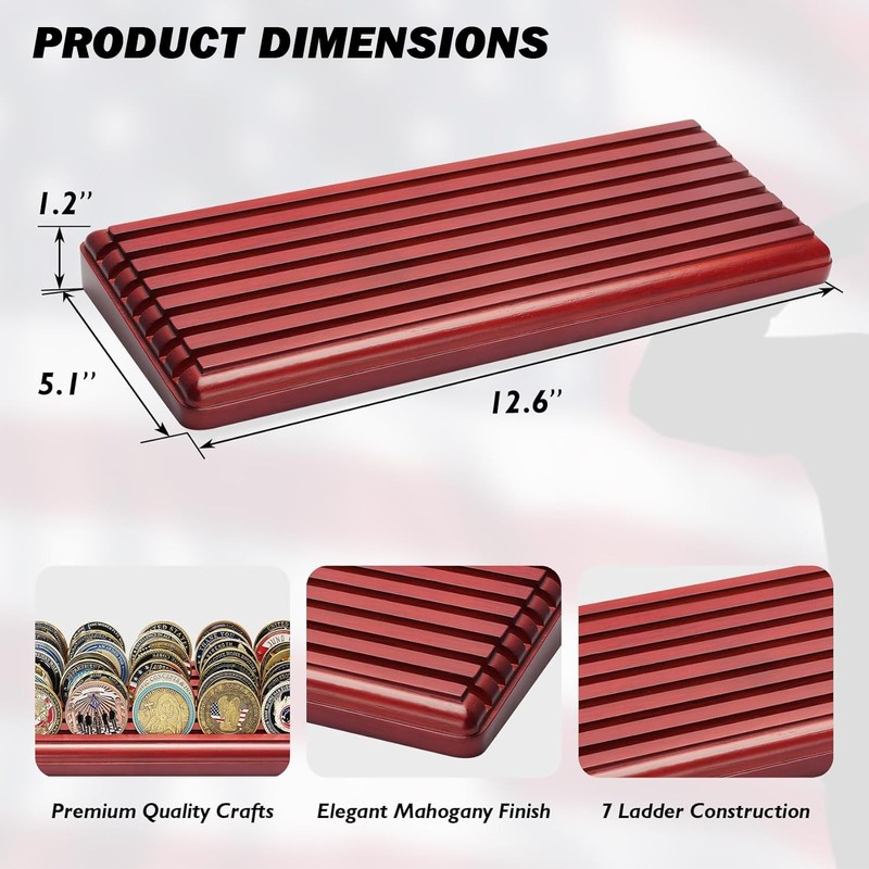 - MULTLE- ANGLE DISPLAY : The challenge coin holder can be placed flat on the desktop and the beveled design is erected at a certain tilt angle, which makes it more convenient for you to display all the challenge coins in your home or office, this coin display stand is worth your choice and expectation.