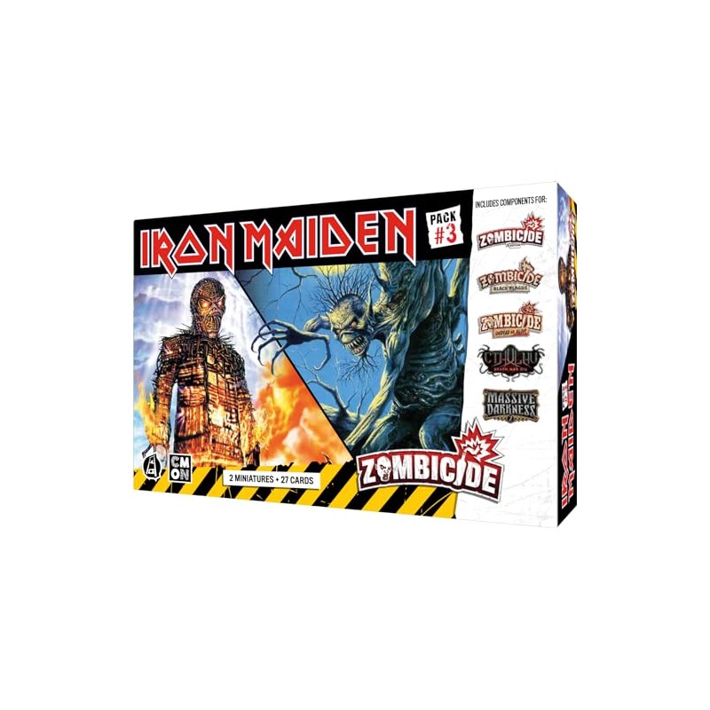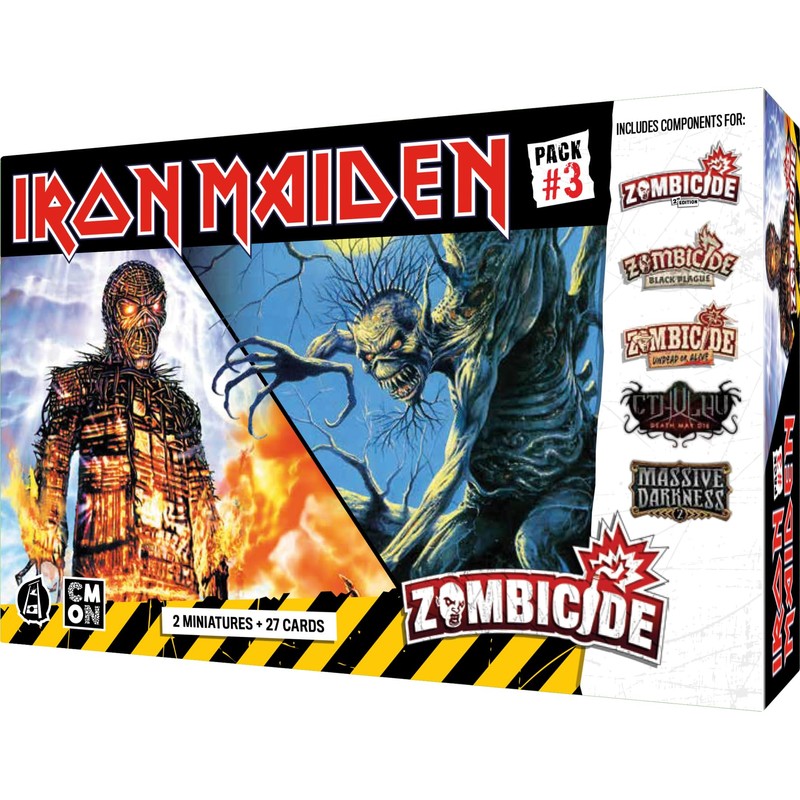 - EXTENSION FOR THE ZOMBICIDE UNIVER: Iron Maiden 3 Pack is a box of figures inspired by the mascot of the British Heavy Metal Iron Maiden Band to play with the various CMON games: Zombicide v2, Undead of alive, Cthulhu Death May Die, Black Plague, Ankh, Rising Sun, Massive Dar. kness 2, kness 2, vaders, etc.