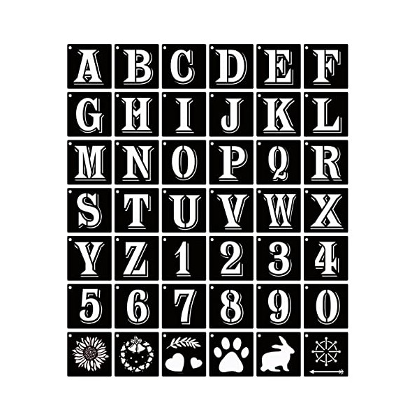 - 【Package Includes】: You will receive 42 pieces painting stencils totally, including 26 uppercase letters, 10 numbers, 6 styles patterns templates. These will give you endless possibilities of customized words to create any DIY art projects as you like.