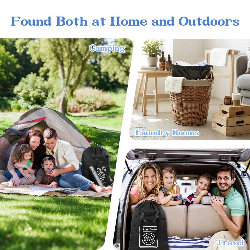 - [Spacious Capacity]: Measuring 27.5''x19.7'', the travel laundry bag offers ample space for storing all dirty clothes from a short trip for a family of four. Whether it's your kids' sportswear or parents' casual outfits, everything fits perfectly inside, keeping your travel neat and tidy.
