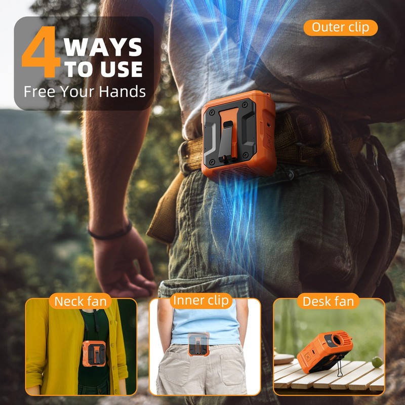 - [Emergency SOS Light] The built-in flash light and SOS mode make the waist fan an ideal choice for outdoor adventures and emergencies. It is not only a cool and portable cooling equipment, but also a reliable partner to protect your safety.