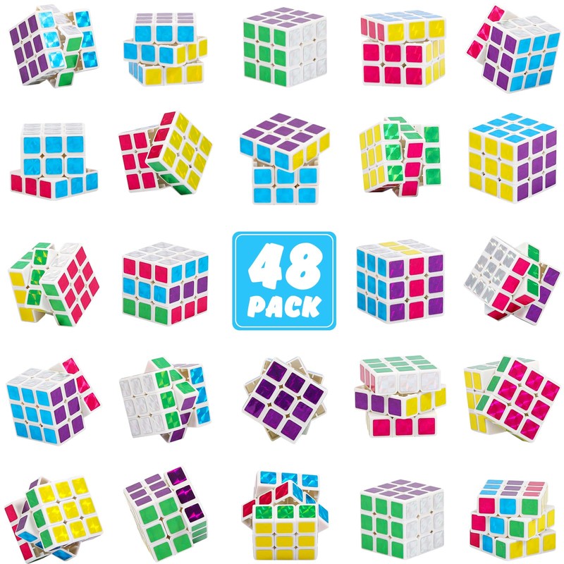 ASONA 24Pcs Mini Cubes Bulk, Holographic White Base Puzzle Cubes Birthday Par...