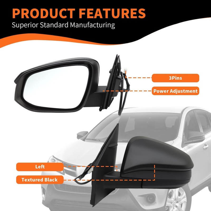 • Applicable Models - Left driver side mirror assembly compatible with RAV-Four 2013 2014 2015 textured black side door mirror with power adjustment; Compatible with 2013 2014 2015 Rav-Four North American or Japan Built Models