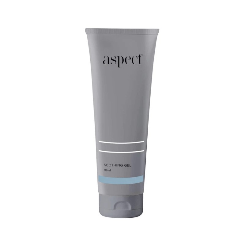 Aspect Soothing Gel 118ml is a multi-purpose cooling gel that comforts and hydrates, suitable for even the most sensitive skin. This Soothing Gel helps to hydrate and soothe the skin from top to toe, and can be used as a mask, moisturizer for excessively oily skin, post-shave for men, or to calm and soothe any areas of concern on the face and body. Aloe Vera soothes and hydrates skin while botanical extracts of chamomile, cucumber, and Allantoin comfort and cool sensitized skin. The formula also contains Evodia Rutaecarpa Fruit Extract, commonly used in Traditional Chinese Medicine for its soothing properties. What are the benefits and features of Aspect Soothing Gel 118ml? Multi-use, cooling, and calming formula. Can be used on the face or body. Soothing gel mask. Aloe Vera, Vitamin B5 & E, Bisabolol, Chamomile, and Cucumber are key ingredients. Perfect for all skin types, including aging skin, dehydration, excess oil & problematic skin, sensitive skin & post-shave. Who is Aspect Soothing Gel 118ml for? This Soothing Gel is perfect for anyone looking for a versatile skincare product that can be used on the face or body to hydrate and soothe the skin, especially those with sensitive skin or post-shave concerns.