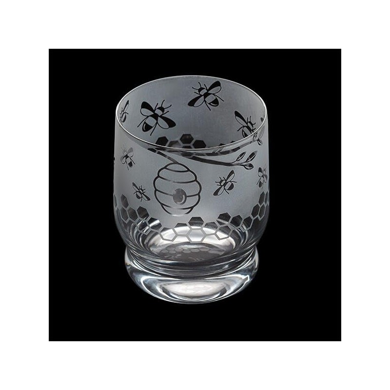 - This glass features bees on a 360-degree etched frieze around the rim of the glass