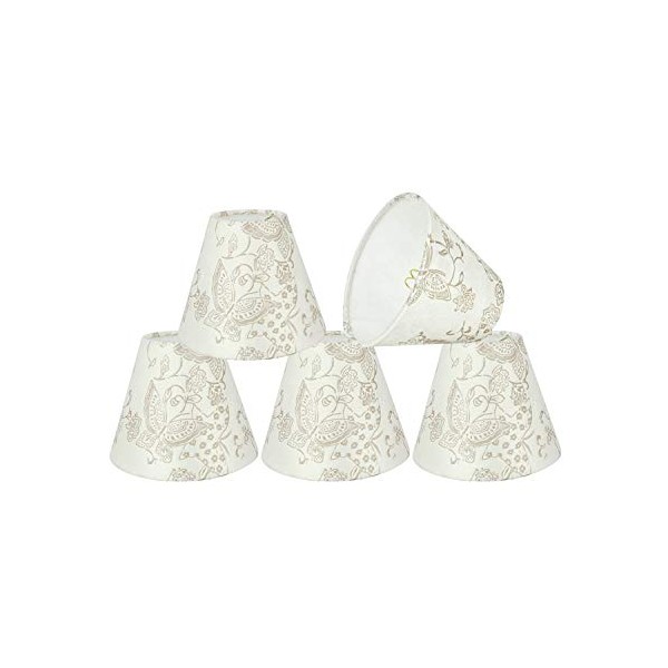 Aspen Creative 32124-5 Small Hardback Empire Shape Chandelier Set (5 Pack), Transitional Design in Off White, 6" Bottom Width (3" x 6" x 5") Clip ON LAMP Shade