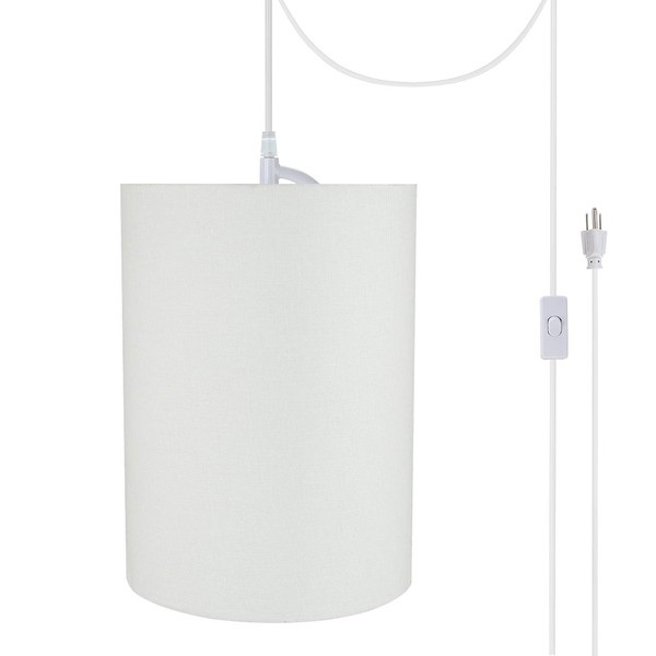 Aspen Creative 71261-21 One Plug-in Swag Conversion Kit Pendant Light with Transitional Drum Fabric Lamp Shade, 8" Width, White-2