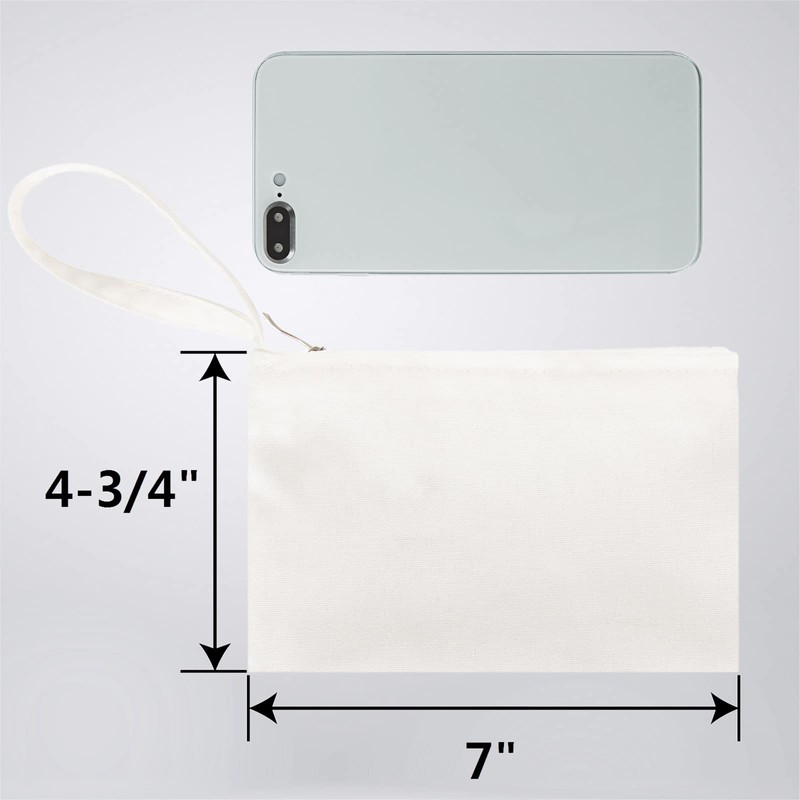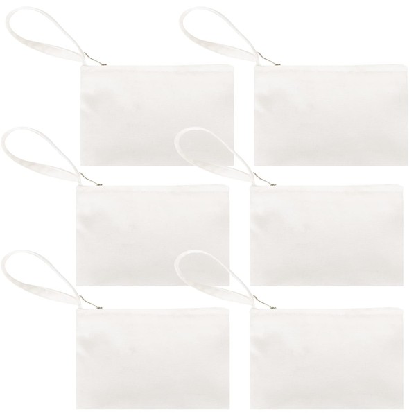 Aspire 6-Pack Wristlet Makeup Bag with Lining, DIY White Cotton Canvas Bag, 7 x 4-3/4 Inch