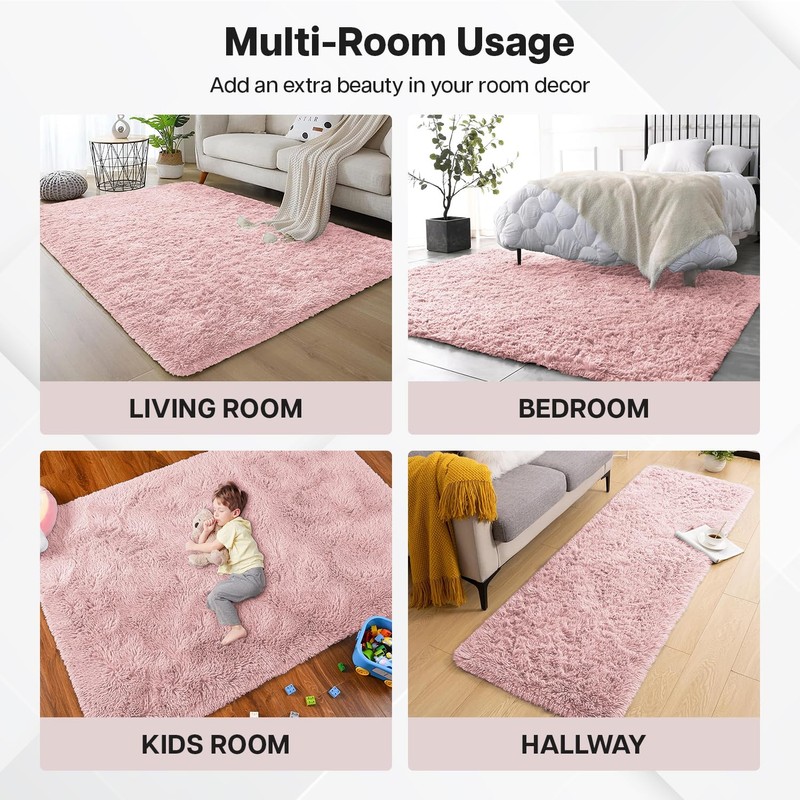 - UPGRADED DESIGN: Large super soft fluffy rug carpet runner mat, with a quality high density pile, ready to unroll for any room and provide the finishing touch. It's super soft and smoothing to provide exceptional comfort, also a best choice for yoga and indoor activities. The area rugs is suitable not only for your master bedroom, living room or dining room, but also the nursery room, children's Room, baby's room, lounge and kindergarten. Add modern style to any room.