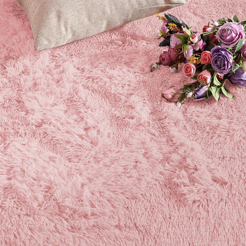 - DURABLE SHAGGY RUGS WITH NON SLIP BOTTOM: This carpet Material is high quality Polyester, with this cozy and comfortable faux fur rug, create an inviting space and a restful feeling in the bedroom, promote a warm, luxury and cozy ambiance. Superfine fiber, extremely soft fabric, no shedding no smell, the area rug to give vibrant color and soft texture to your room. And the non-slip bottom design to keep the rug as far as possible stay in place.