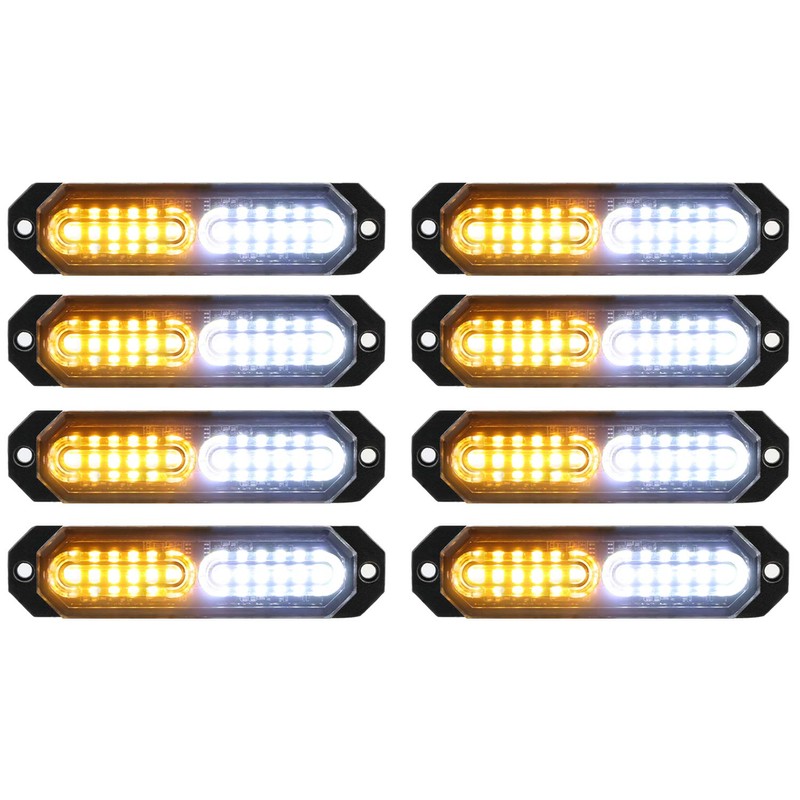 ASPL 8pcs Sync Feature Ultra Slim 12-LED Surface Mount Flashing Strobe Lights for Truck Car Vehicle LED Mini Grille Light Head Emergency Beacon Hazard Warning lights (Amber/White)