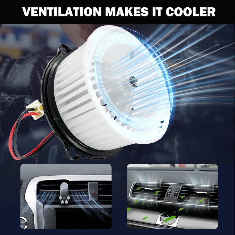 - Dual function This blower has a fast speed and can quickly blow the cold air above the air conditioning evaporator or the hot air from the warm water tank into the car. It is suitable for the ventilation and heating systems of car air conditioners. Ventilation makes it cooler.