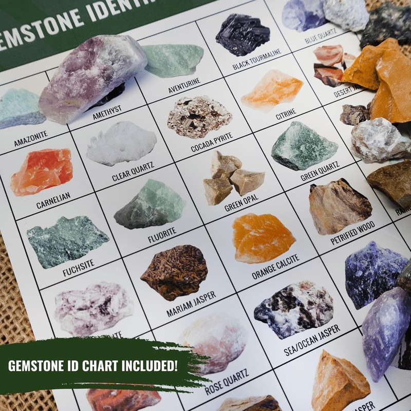- IDENTIFICATION CHART - Included is a gemstone identification chart so you can easily identify the gems from your rough mix bags, and the chart is laminated so you can take it with you to identify precious gems out in the field